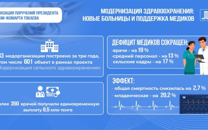 📉 Принятые меры позволили сократить дефицит врачей по стране на 19%, а средних медработников – на 13%. На селе дефицит кадров снизился на 17%.