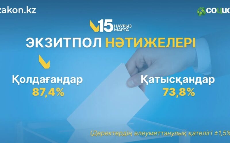 «Социс-А» мамандары 2026 жылғы 15 наурызда ҚР жаңа Конституциясын қабылдау жөніндегі республикалық референдум өткен күні, дауыс беру учаскелерінен шыққан азаматтар арасында exit poll әдістемесі арқылы азаматтардың ерік білдіруінің алдын ала нәтижелерін есептеді.